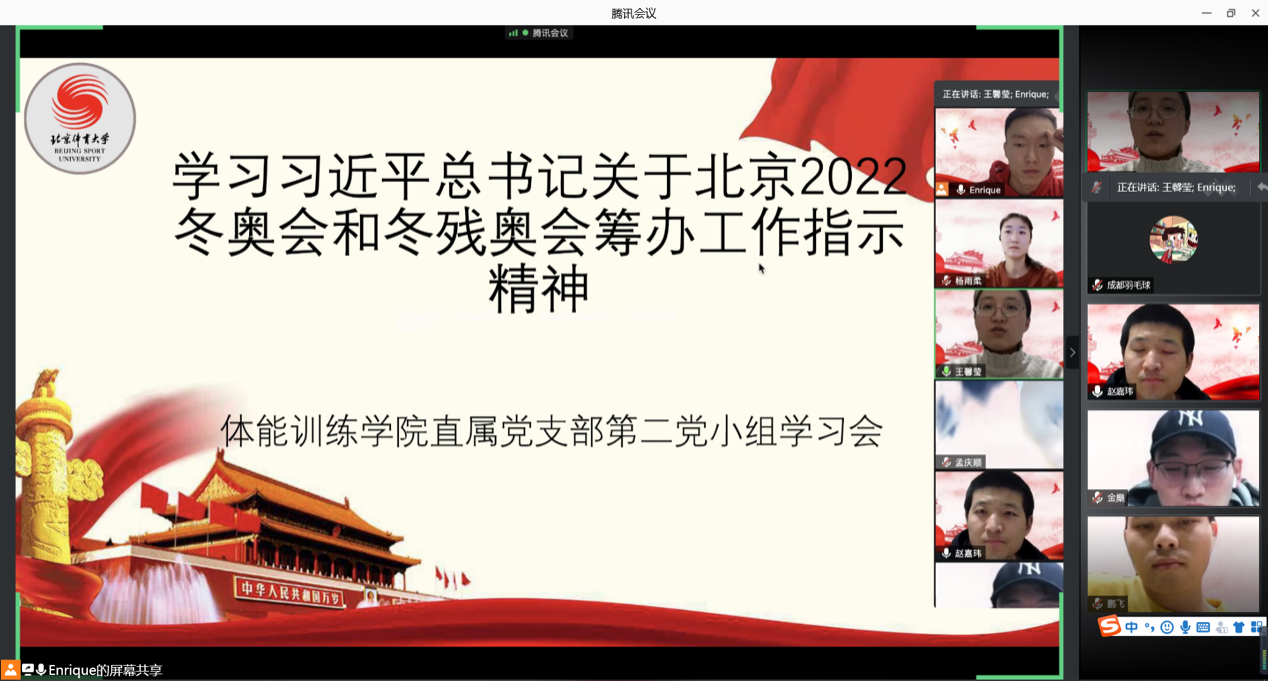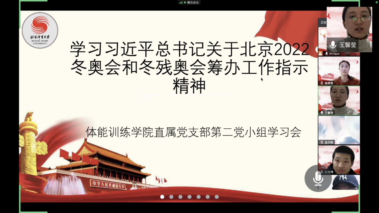 近日,体能训练学院掀起学习习近平总书记在2022年冬奥会和冬残奥会筹办工作汇报会上讲话精神的学习热潮。各党小组、各年级分别召开线上学习会议。