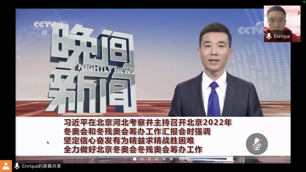 会上,大家一同回顾1月20日《新闻联播》对习近平总书记在北京、河北考察并主持召开北京2022年冬奥会和冬残奥会筹办工作的视频报道。习近平在讲话中强调,北京冬奥会、冬残奥会是我国“十四五”初期举办的重大标志性活动。要充分认识举办北京冬奥会、冬残奥会的重大意义,增强做好筹办工作的责任感、使命感、紧迫感。在学习了总书记的讲话指示精神后,大家纷纷发表自己的感受。