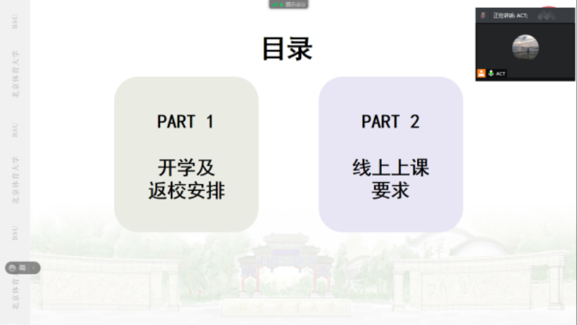 其次,针对3月3日-19日线上教学工作,教研室要充分利用集体备课,一对一指导进行课程准备。结合去年线上教学的经验,学院对新学期的教学工作进行讨论和安排。对理论课程如何进行雨课堂教学,实践课程如何与雨课堂,腾讯会议等结合进行充分探讨。体能训练学院作为术科院系督导教学示范点,要提前做好周密规划,整理好课后数据的统计分析,为其他术科院系的线上课程授课做好示范、探索和创新。学院也将借助此次线上授课的机会,结合去年线上授课的优秀经验,在学生返校后继续开展线上授课经验分享、教学竞赛等将教学科研相结合的系列学术活动。真正将现代化信息技术与教育教学相结合,提升教育教学信息化水平,将打造智慧课堂、实现精准教育落到实处。